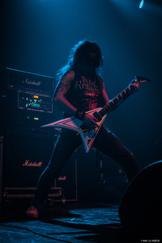 Ne connaissant Heathen que de nom, je ne peux pas évaluer la qualité de leur setlist. Cependant, en ce qui concerne leur performance, elle était digne d'un véritable concert de thrash metal : des riffs rapides, des lignes de basse puissantes, une utilisation intensive de la double pédale, et une alternance entre un chant clair et des moments plus sombres. J'ai eu l'occasion de découvrir quelques titres qui ont retenu mon attention, tels que "Empire of the Blight," "Death By Hanging," et "Hypnotized." Je tiens à faire une mention spéciale à Kragen Lum, le guitariste qui remplaçait Gary Holt au sein d'Exodus pendant que ce dernier était en tournée avec Slayer.